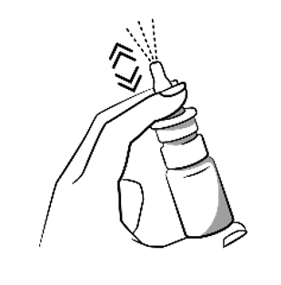 4 – Bend head slightly forward, insert spray tip as far as possible and hold bottle upright while breathing in slowly and actuating firmly once. Avoid drawing the gel further into your nose by sniffing during or after spraying.